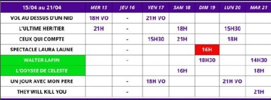 Du 15/04 au 21/04/2026 le lundi, mardi, mercredi, vendredi et les week-ends.