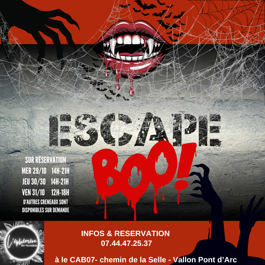 Le CAB07 vous invite au Bal des Vampires. Vivez un Escape Game Halloween dès 12 ans. Le 31, soirée spectacle et cocktail dans un univers mystérieux. Réservations conseillées par internet.