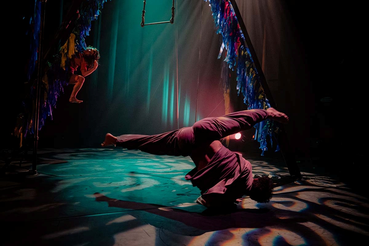 Les corps se renversent, s’élèvent et se transforment au fil des tableaux, faisant apparaître des créatures et des paysages fantastiques. Le mouvement, l’image et la narration se croisent pour composer un voyage initiatique.