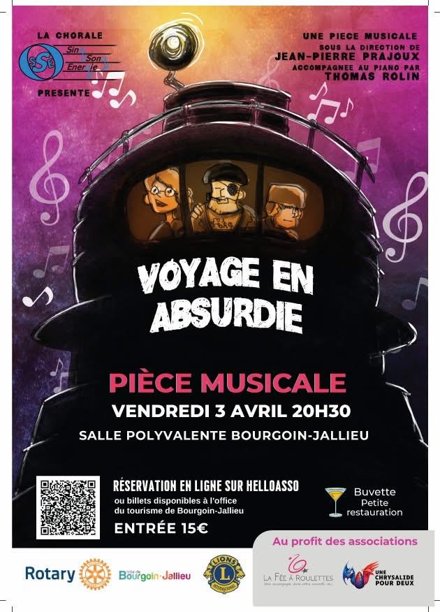 Une petite restauration et buvette sont prévues à partir de 19H00 Réservation sur Hello Asso : https://www.helloasso.com/associations/rotary-club-bourgoin-la-tour-du-pin/evenements/soiree-comedie-musicale-voyage-en-absurdie