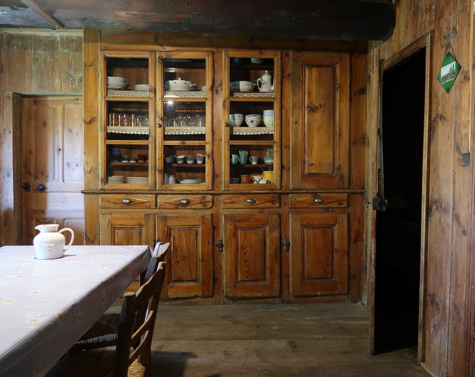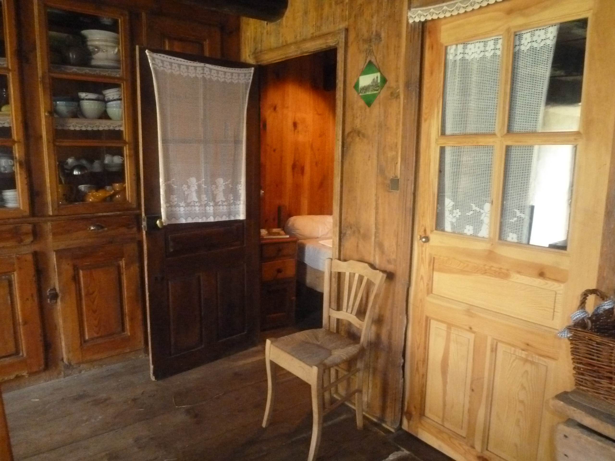 – 2 places (lit double) dans la chambre d’époque, avec lit placard enfant d’antan (lit de 1,50m de long). Elle est située à l’étage et partage le palier avec le dortoir.