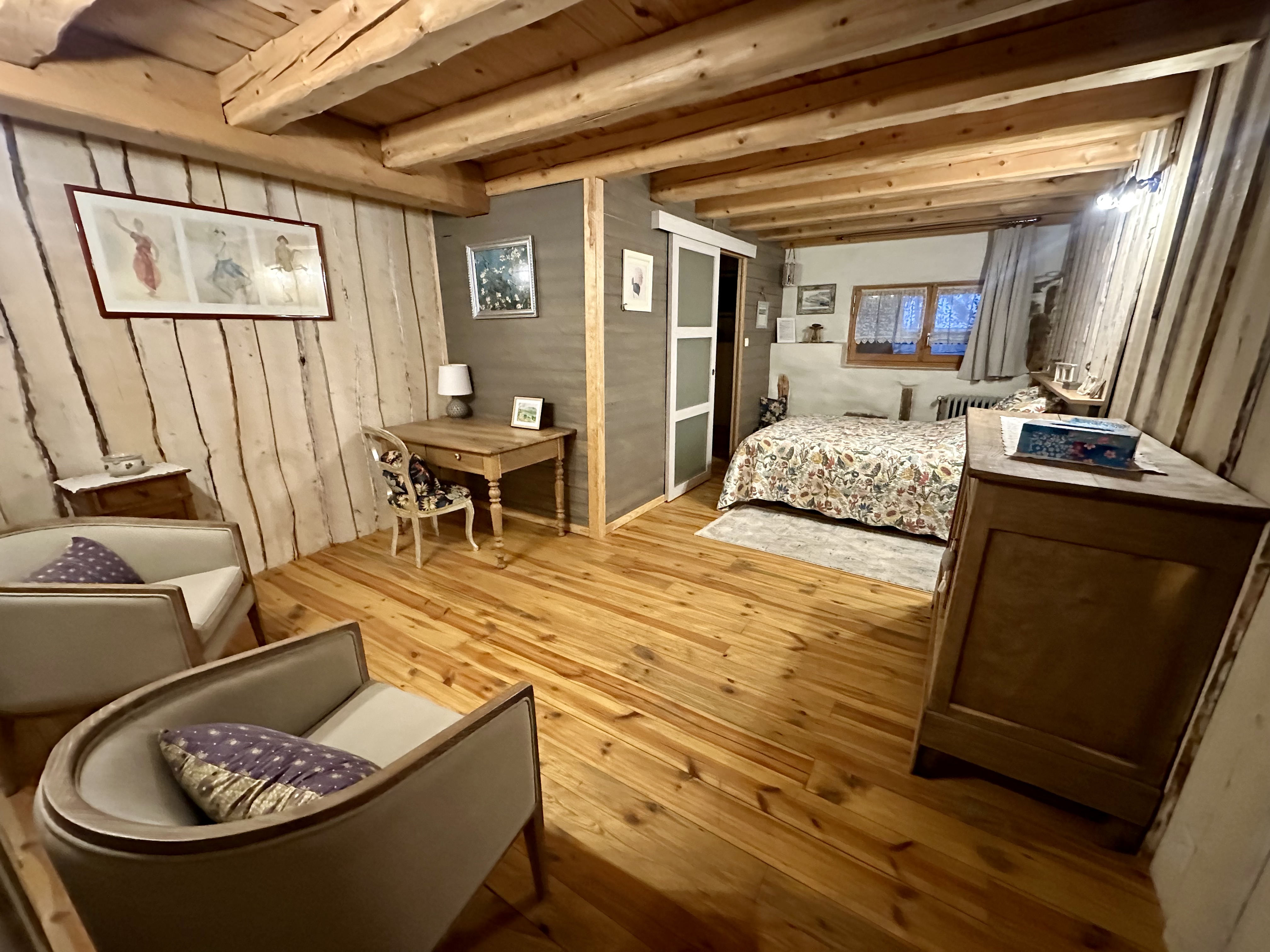 Dans ces deux chambres partagées (LES JONQUILLES / LES GENTIANES), nous disposons de lits simples suffisamment espacés pour préserver l’intimité de chacun. Situé dans l’aile Est de notre Ferme, vous y trouverez une ambiance chalet de montagne calme et reposante.