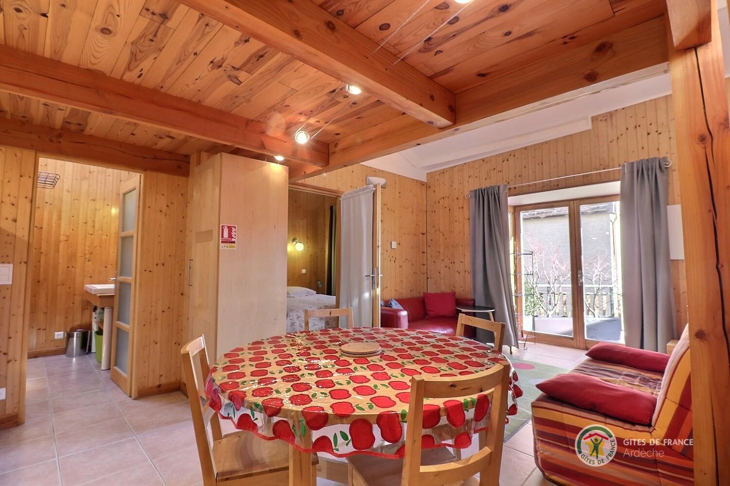 Deux gîtes peuvent être loués ensemble pour une capacité de 8 personnes avec mise à disposition une grande salle indépendante et sa cuisine équipée.