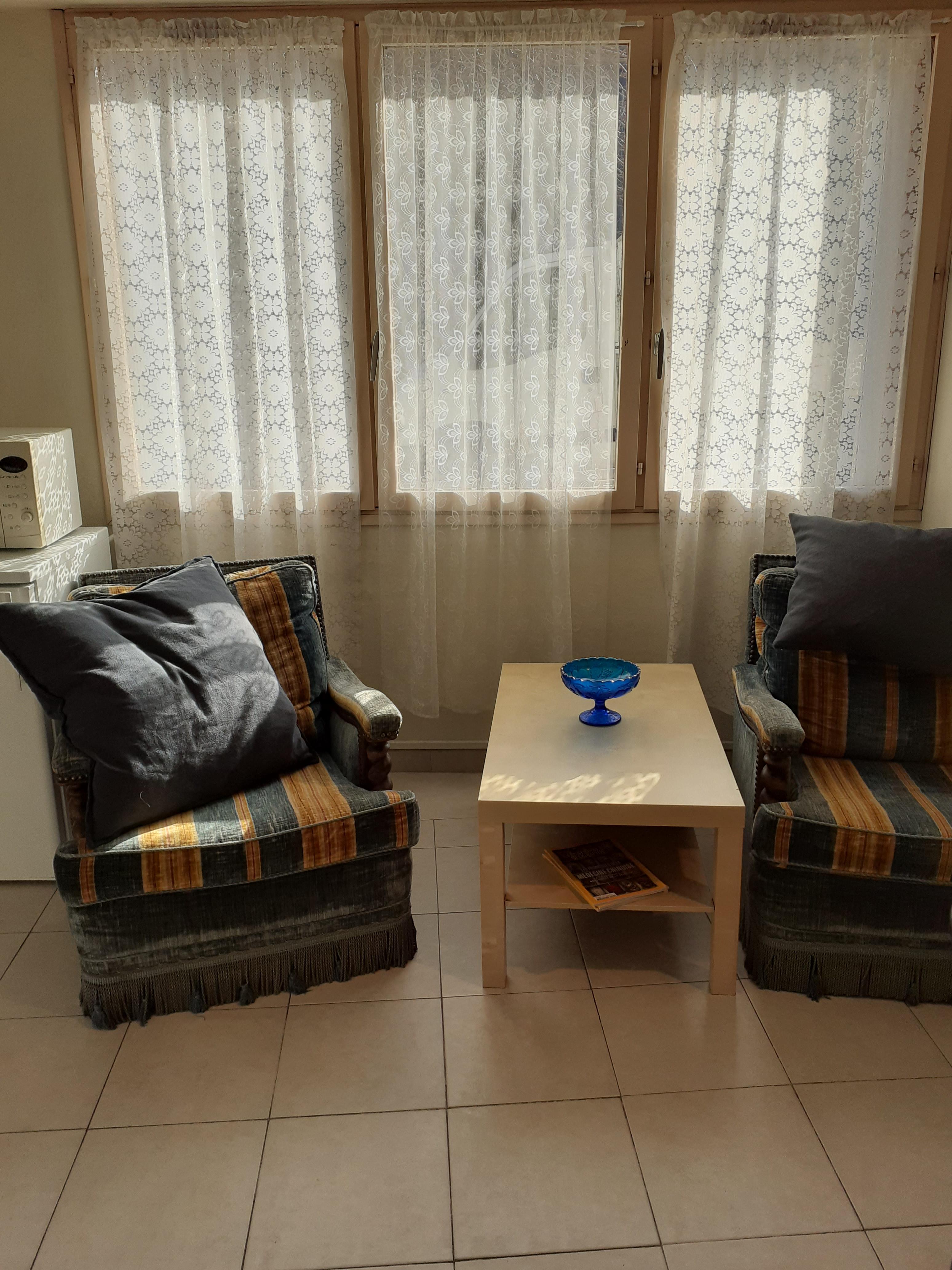 Studio situé en RDC. Dans le village de St Laurent les Bains, en bordure de rue. A 100 mètres des Thermes, direction de La Bastide Puylaurent. Hall d'entrée commun .