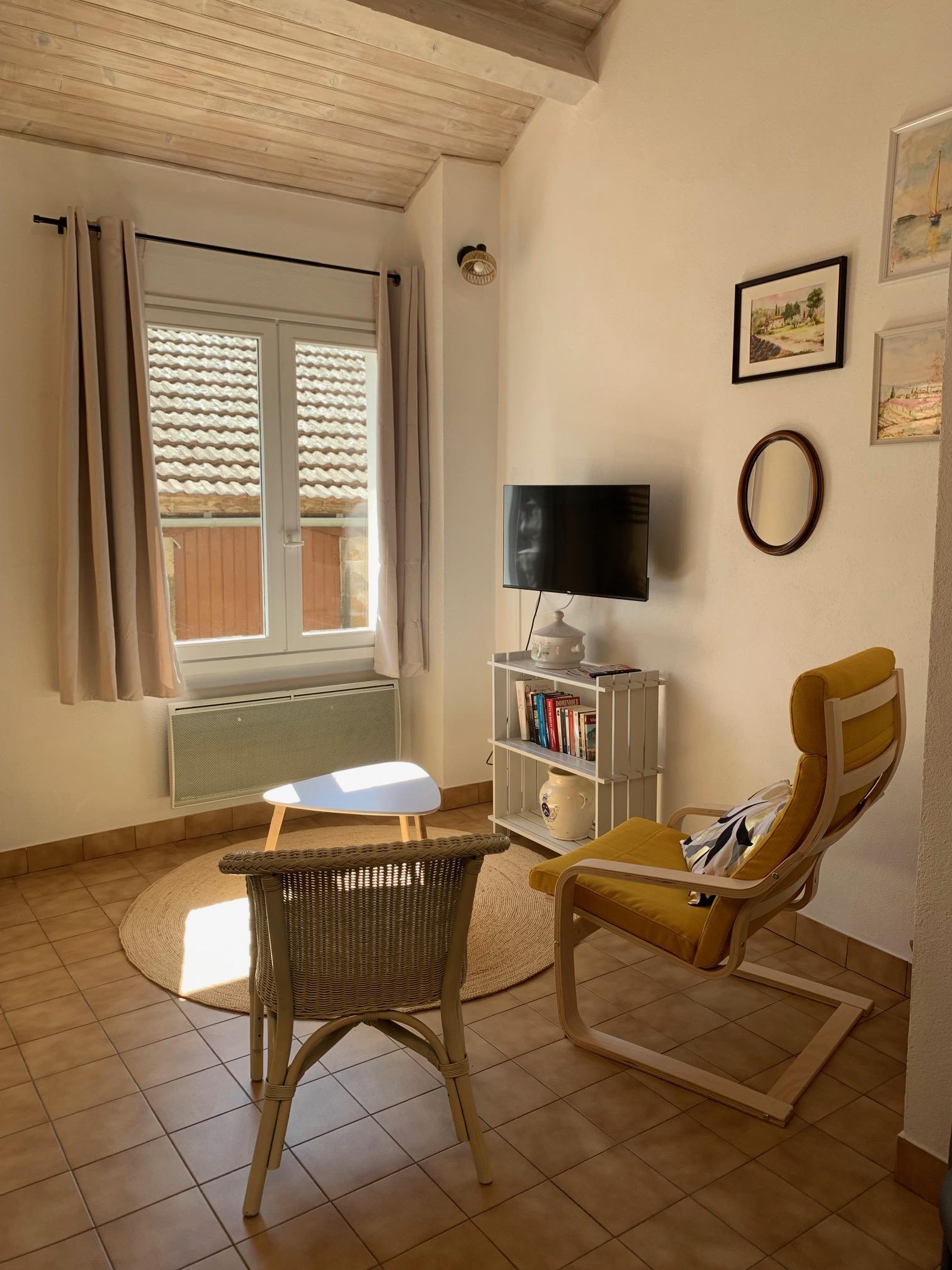 Les équipements sont : télévision, micro onde, mini four, plaque de cuissons au gaz (fourni), réfrigérateur, ustensiles de cuisine, vaisselle prévue pour quatre personnes, literie en 140 récente, couvertures, fer à repasser avec table, lave linge au sous sol commun aux 3 logements (10€ pour 3 semaines).