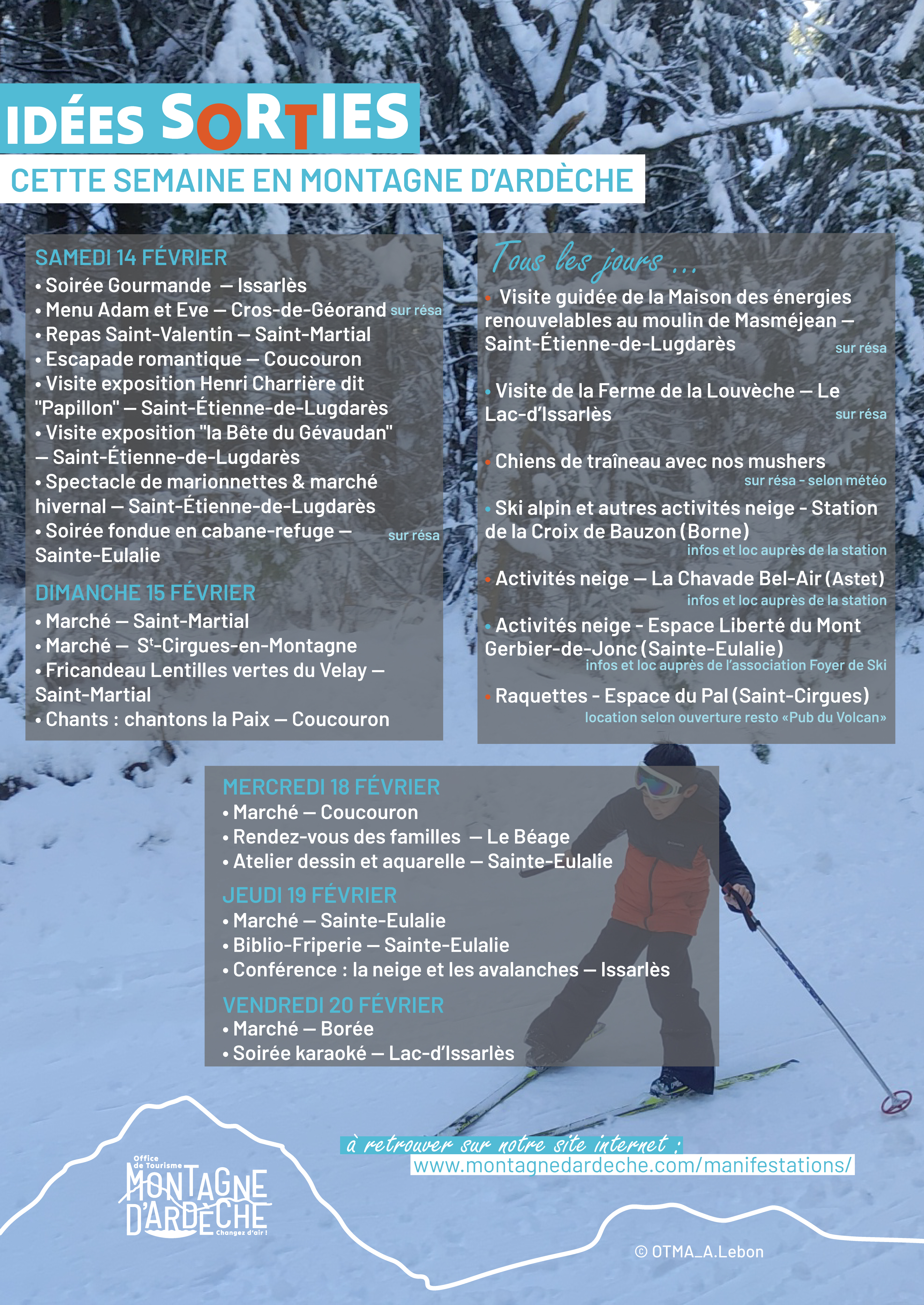 Pour des idées sorties, sur un week-end ou une journée, la Montagne d’Ardèche fourmille d’animations variées, tout au long de l’année, à découvrir au travers de son agenda. Vous avez envie de dépaysement ? La Montagne d’Ardèche est le lieu de rencontres et de manifestations où les valeurs de l’Ardèche vous surprendront.