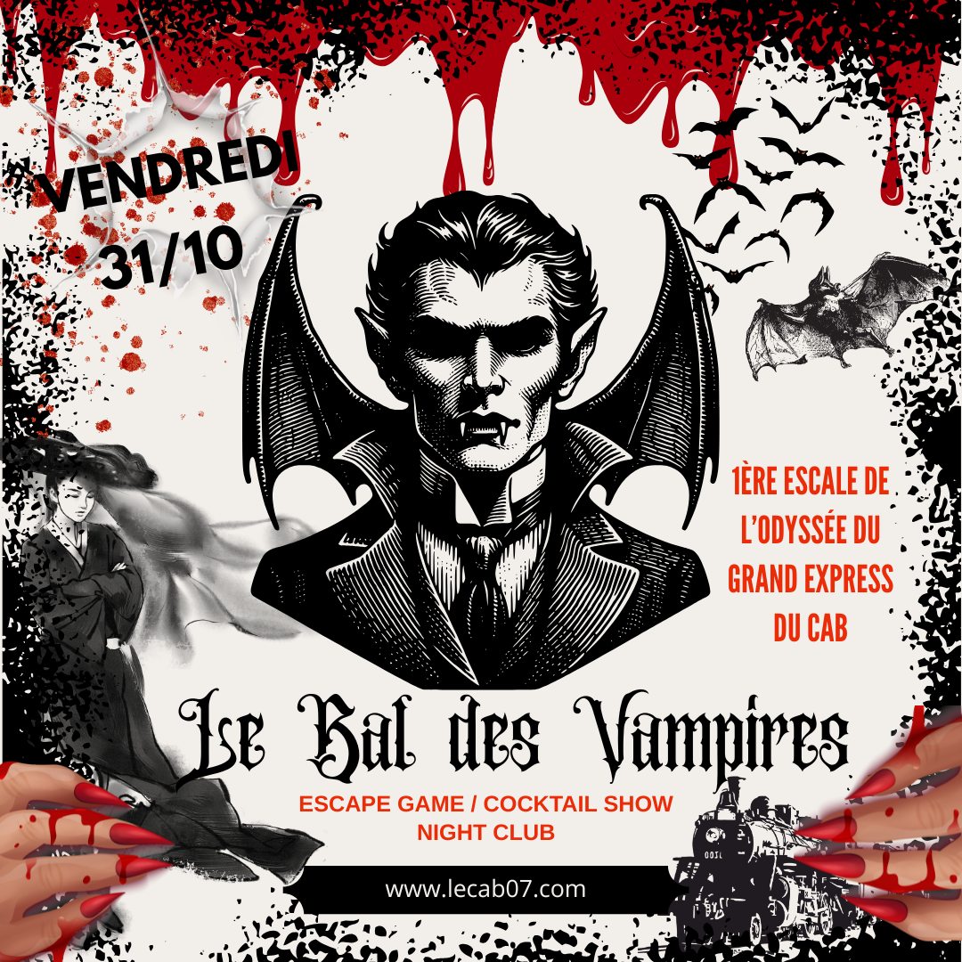 Le CAB07 vous invite au Bal des Vampires. Vivez un Escape Game Halloween dès 12 ans. Le 31, soirée spectacle et cocktail dans un univers mystérieux. Réservations conseillées par internet.